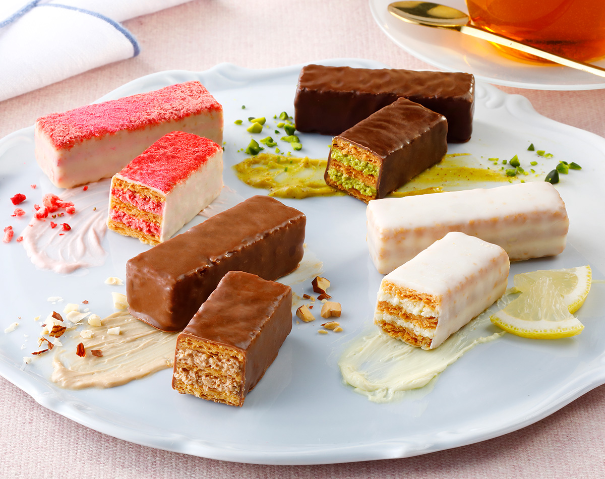 果実をたのしむミルフィユ詰合せ32個入パイの層の数、果実の食感、木の実の香りなど。