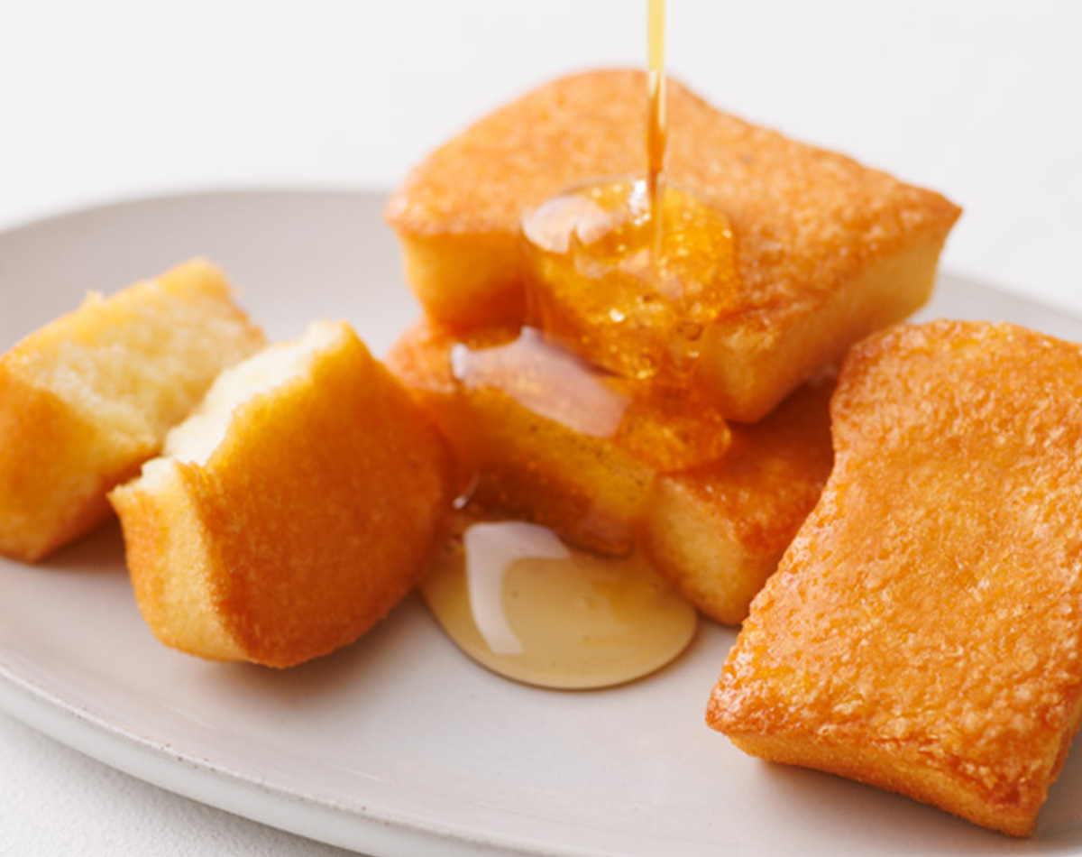 焼き上げた後にメープルシロップを染み込ませることで、特有のジュワっとした食感に仕上げています。スタッフおすすめポイント★