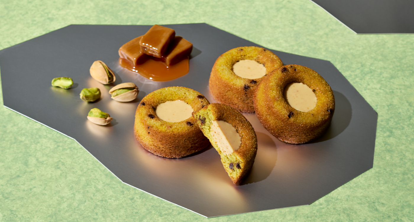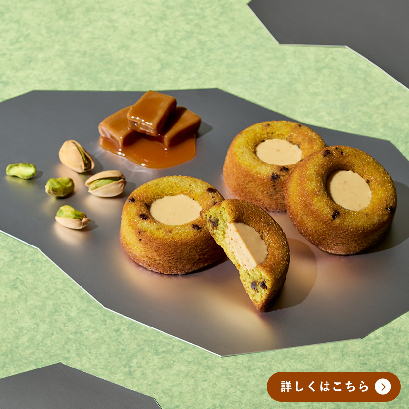 キャラメルと皮付きヘーゼルナッツを練り込んで焼きあげた、しっとりと心地のよい食感のマドレーヌです。